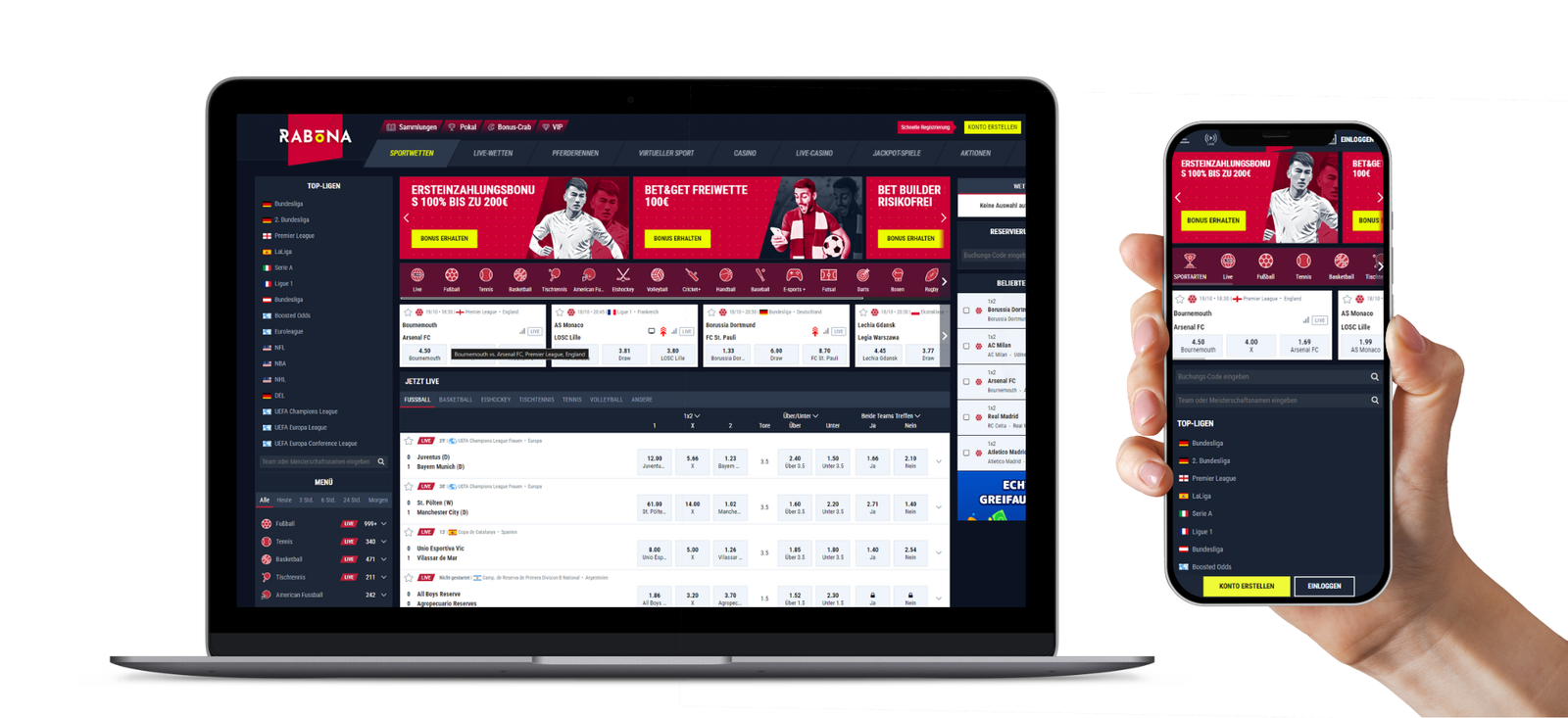 Zusätzlich bewerten wir das Wettangebot: Finde heraus, wer die besten Quoten für deine bevorzugten Sportarten bietet und ob Live-Wetten verfügbar sind. Für mobile Nutzer prüfen wir, welche Anbieter benutzerfreundliche Apps anbieten, um auch unterwegs bequem wetten zu können. Zuletzt werfen wir einen Blick auf den Kundenservice, um sicherzustellen, dass du jederzeit Unterstützung erhältst.